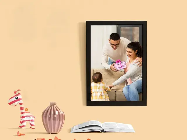 A photo frame is a decorative border around a photograph to protect and enhance its appearance.